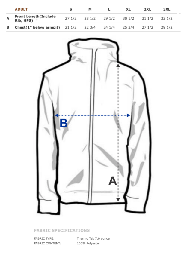 A sizing chart is included below. The jacket is a relaxed-fit unisex style. The best measurement to focus on is the chest when comparing with similar garments you might have. Dimensions are in inches.