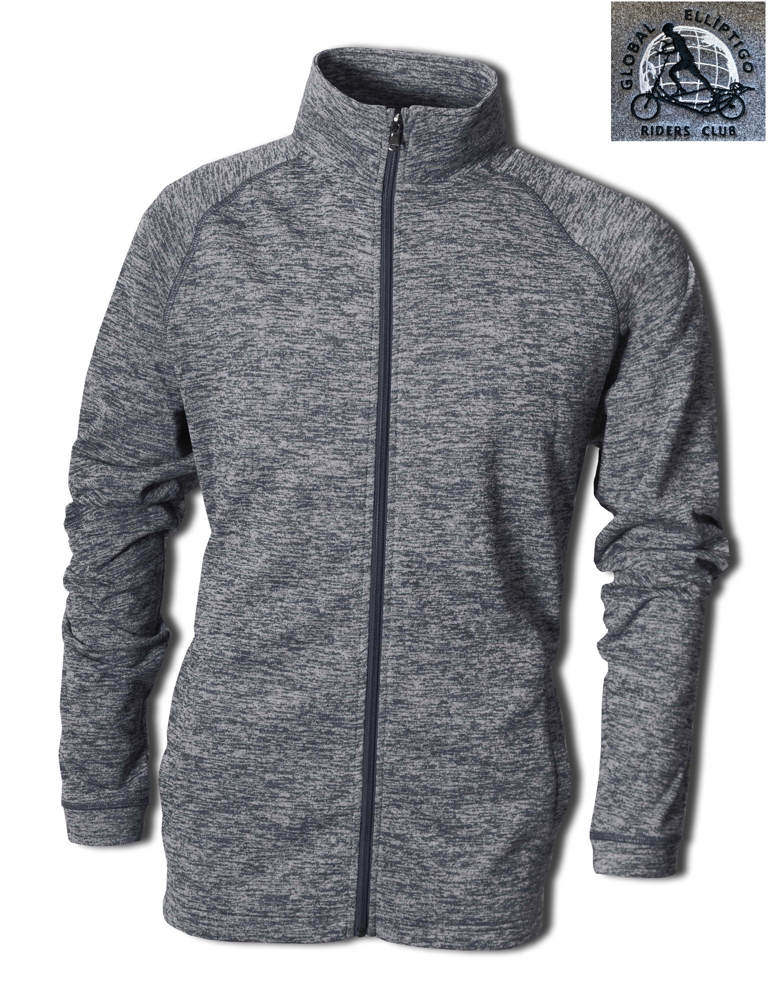 The silver-level award is a full zip lightweight Thermo Tek jacket in charcoal gray heather. A Global ElliptiGO Riders Club logo will be embroidered on the upper left side of the garment, similar to the one shown but with the globe in orange.
