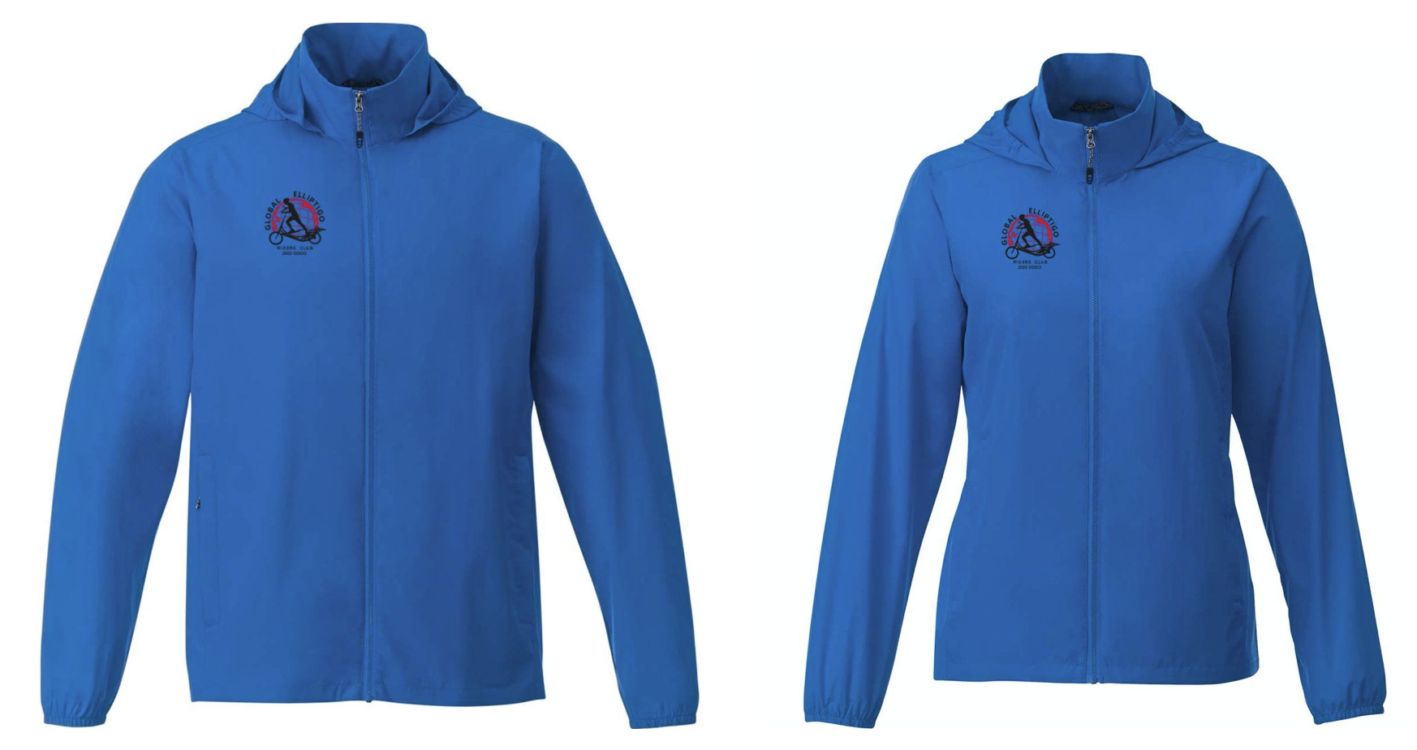 The Elevate Toba Packable Jacket stows away into its lower left pocket for the ultimate lightweight weather protection on the GO. In addition to 100% Polyester 240T woven water-resistant coating and water-repellent finish, it has a roll-away hood to keep the elements at bay. Articulated elbows and ergonomic sleeves provide maximum mobility. The women’s version has shaped seams and a tapered waist for a flattering fit. The GERC logo and 2022 GOGO are embroidered in black and red on the upper left of the jacket front. (Note: the mockup images show the logo on the opposite side)